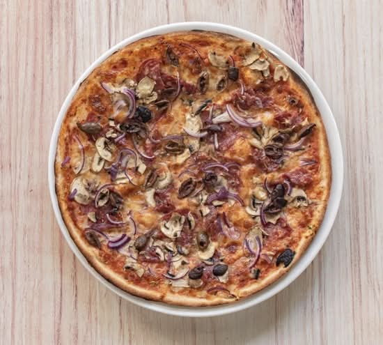 Rockin RobinTomato base, Cheese, Ham Mushroom, Capsicum, Onion, Cheese on top×