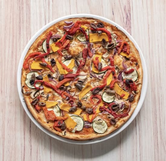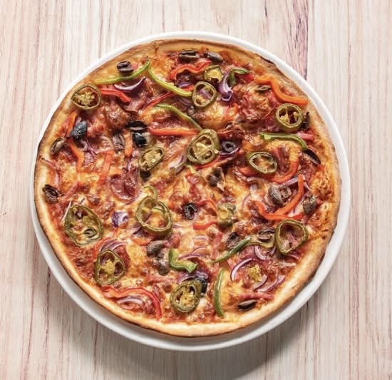 Peggy SueTomato base, Cheese, Mushrooms, Capsicum, Onion, Olives, Cheese on top.×