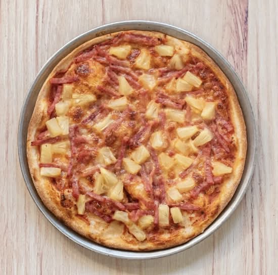 Tomato base, Cheese, Ham, Pineapple, Cheese on topChoose one